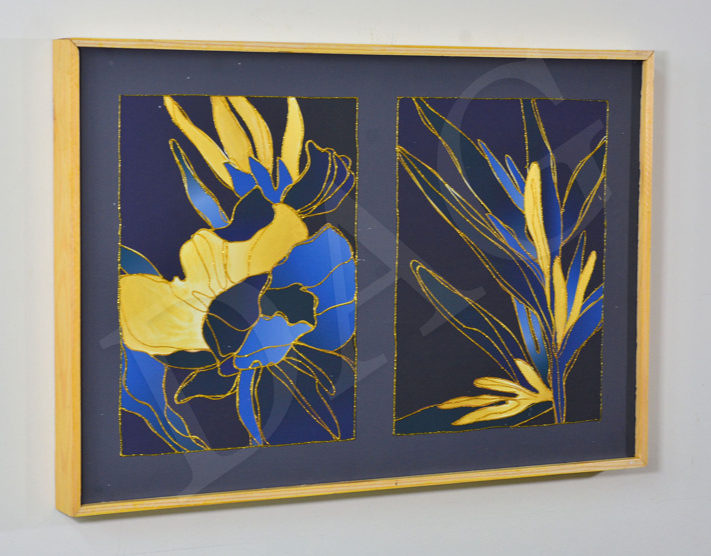 Digital Embellished Painting of Gold embosed drawing Digital Embellished Painting of gold embosed drawing arrives ready to hang, with hanging