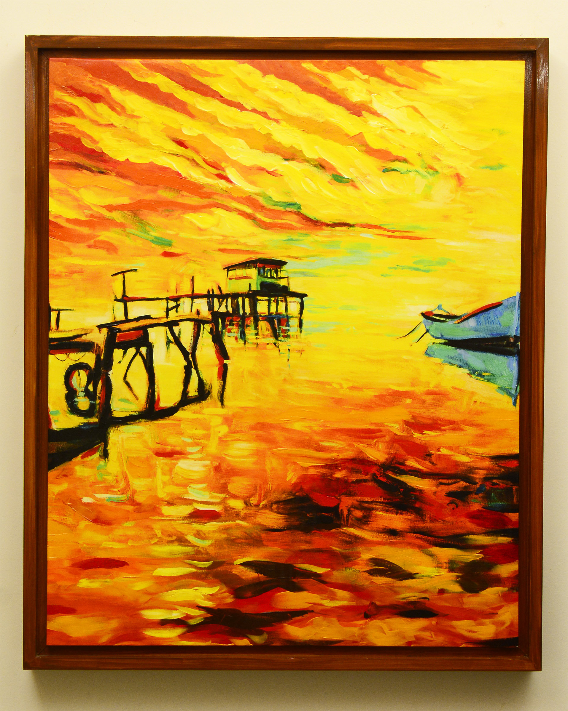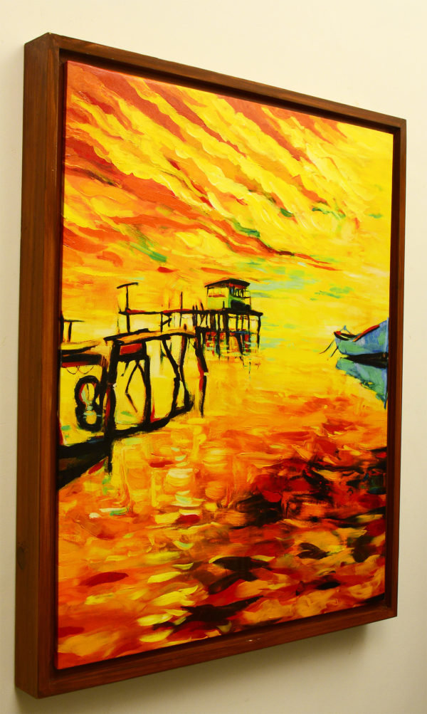 Digital Embellished Painting of river deck | Digital Embellished Painting of river deck arrives ready to hang, with hanging accessories included and no additional framing required. |